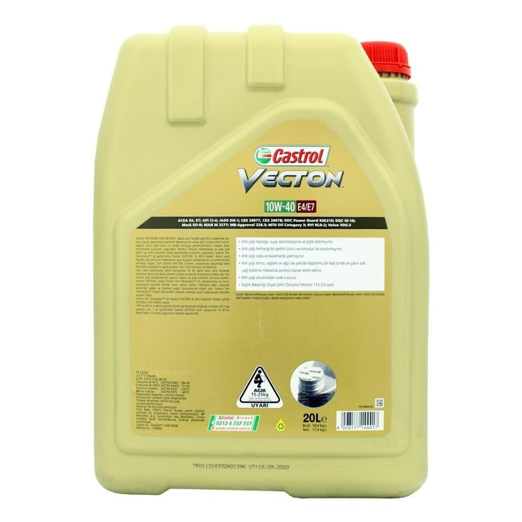 Castrol Vecton 10W40 E4/E7 20 Lt Tam Sentetik Motor Yağı