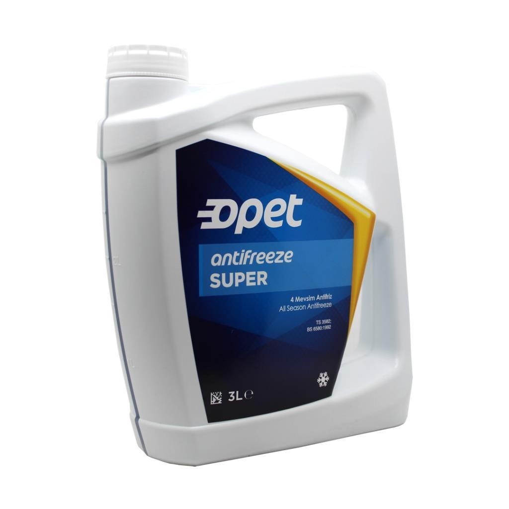 Opet Süper Antifriz, benzinli veya dizel araçların soğutma sistemlerinde dört mevsim kullanılmak üzere geliştirilmiş, özel katıklarla formüle edilmiş üstün nitelikli etilen glikol bazlı konsantre soğutma sıvısıdır. Özel formülasyonu ile soğuk iklimlerde radyatör suyunun donmasını önlediği gibi sıcak iklimlerde radyatör suyunun kaynamasını engeller.